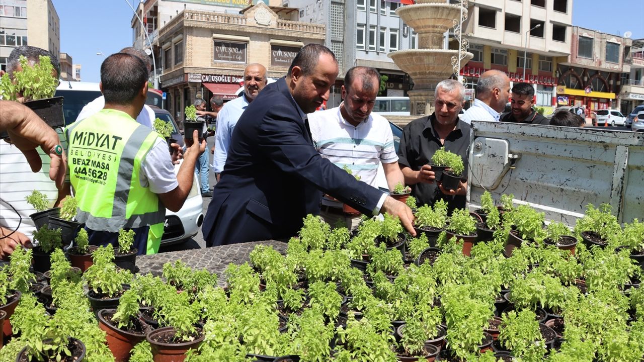 MARDİN (AA) - Mardin'in Midyat ilçesinde, vatandaşlara fesleğen ve reyhan çiçeği dağıtıldı.