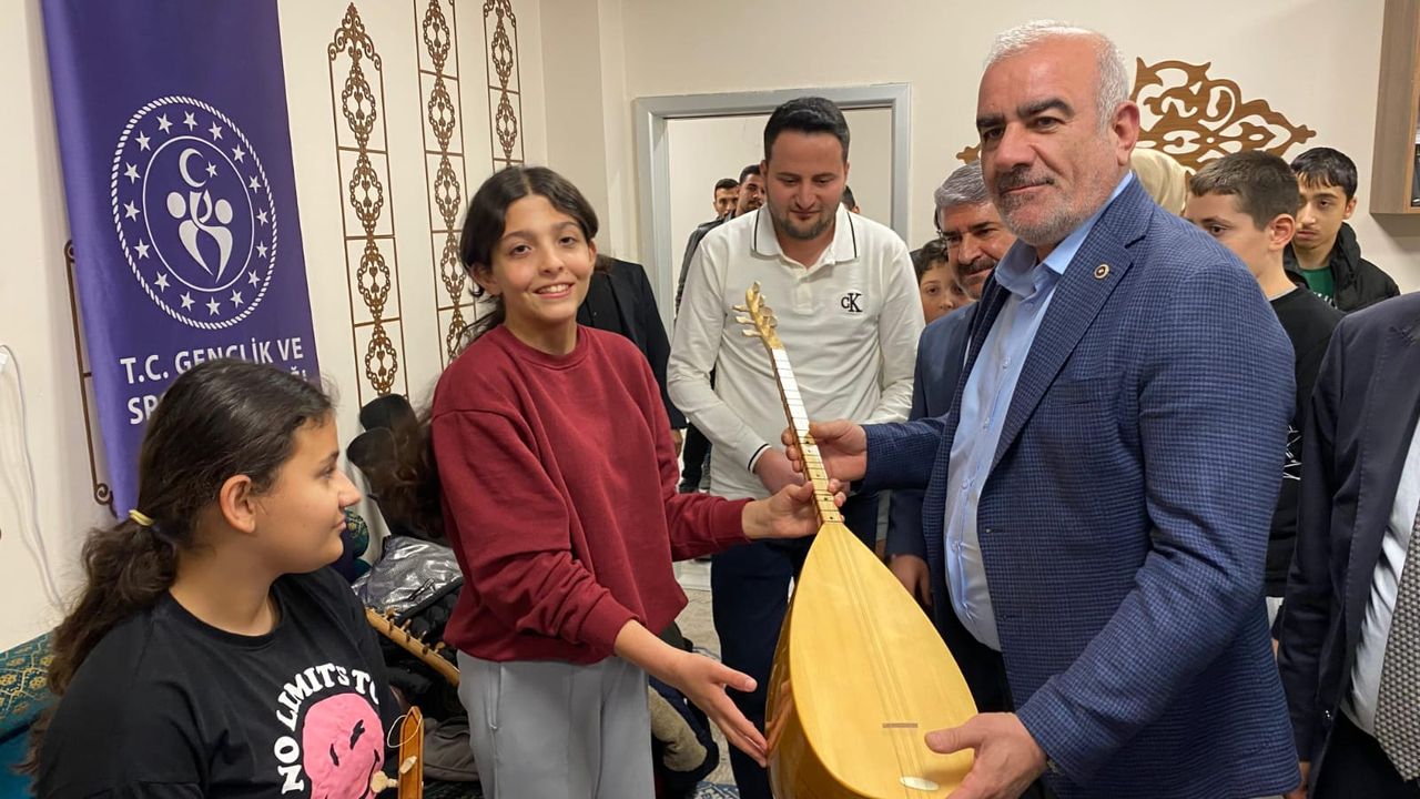 Besni/ADIYAMAN - AK Parti TBMM Kamu İktisadi Teşebbüsleri Komisyonu Üyesi ve AK Parti Adıyaman Milletvekili Hüseyin Özhan, Besni ilçesindeki Gülşah Boy Gençlik Merkezi'ni ziyaretinde gençlere verdiği sözü yerine getirerek bağlama ve piyano desteğinde bulundu.