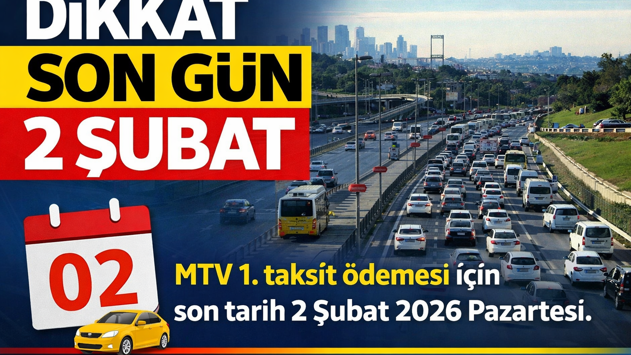 Motorlu Taşıtlar Vergisi’nin (MTV) 2026 yılına ait birinci taksit ödemelerinde sona yaklaşıldı. Gelir İdaresi Başkanlığı tarafından yapılan açıklamaya göre, MTV 1. taksit ödemeleri en geç 2 Şubat 2026 Pazartesi günü tamamlanacak.