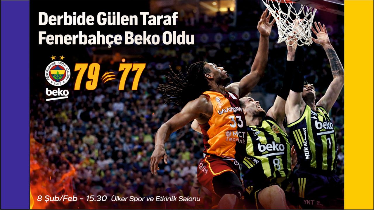 İSTANBUL – Fenerbahçe Beko Erkek Basketbol Takımı, Türkiye Sigorta Basketbol Süper Ligi 19. hafta mücadelesinde sahasında Galatasaray MCT Technic’i 79-77 mağlup ederek derbiden galibiyetle ayrıldı.