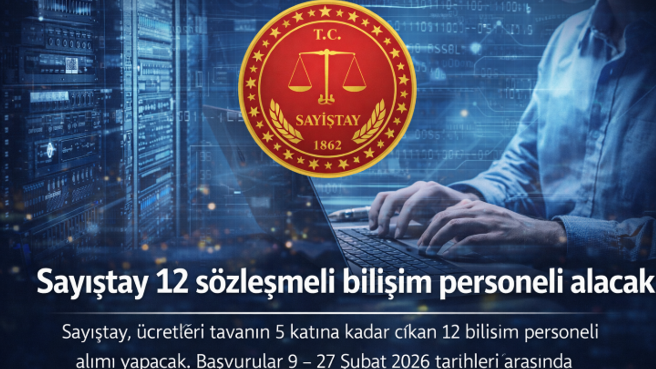 Türkiye Cumhuriyeti Sayıştay Başkanlığı, bilişim birimlerinde görevlendirilmek üzere, ücret tavanının 2 katından 5 katına kadar değişen maaşlarla toplam 12 sözleşmeli bilişim personeli alacak. Başvurular 9 Şubat 2026'da başlayacak ve 27 Şubat 2026 mesai bitimine kadar devam edecek.