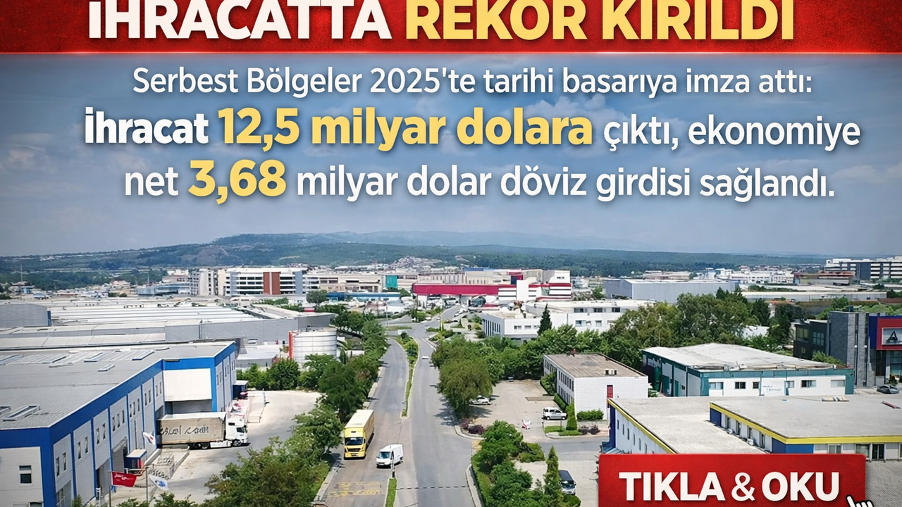 Serbest Bölgeler 2025'te tarihi başarıya imza attı: İhracat 12,5 milyar dolara çıktı, ekonomiye net 3,68 milyar dolar döviz girdisi sağlandı.