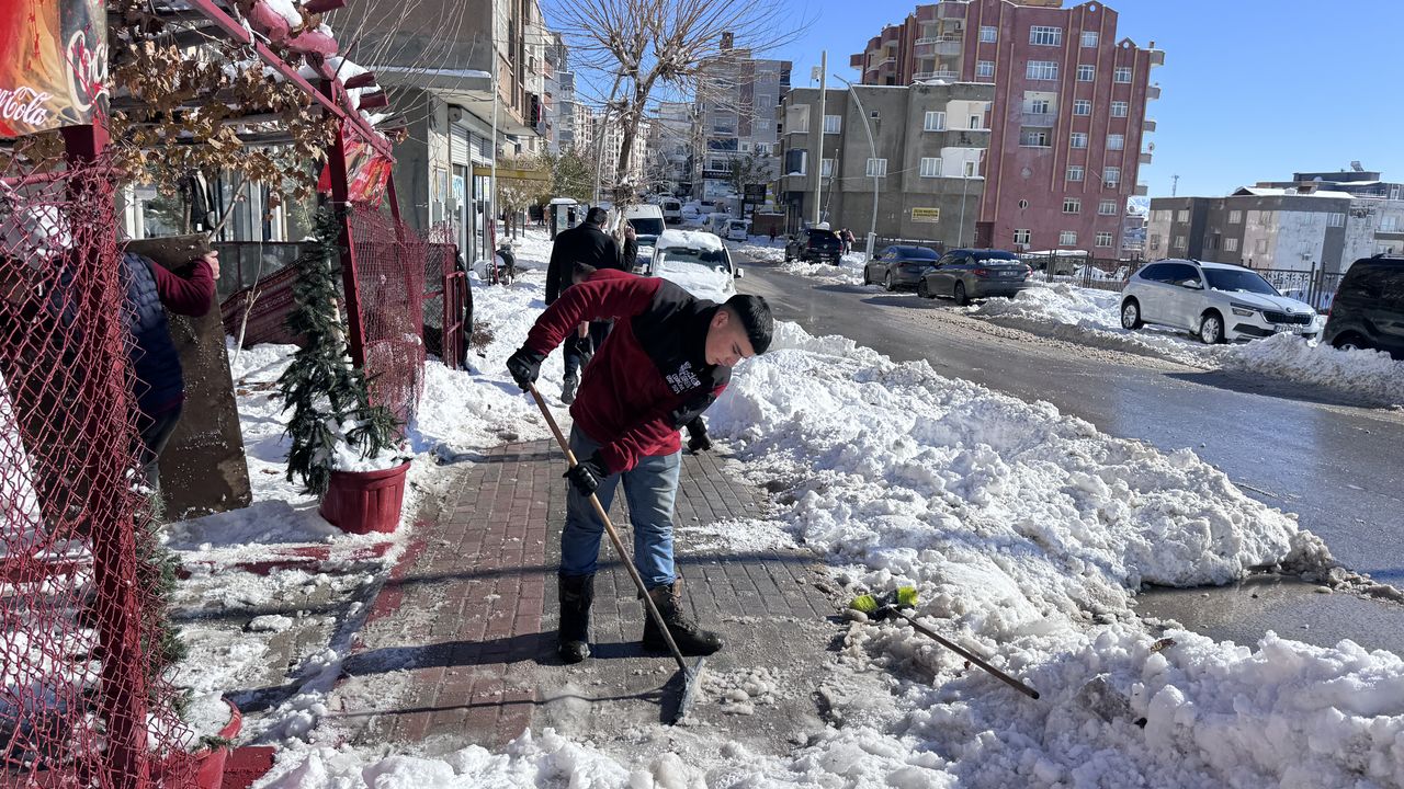 Öte yandan kentte gece sıcaklığın sıfırın altında seyretmesi ev ve iş yerlerinde buz sarkıtları oluşturdu. Vatandaşlar araçların üstündeki karları, ev ve iş yerlerinin önünü temizledi.