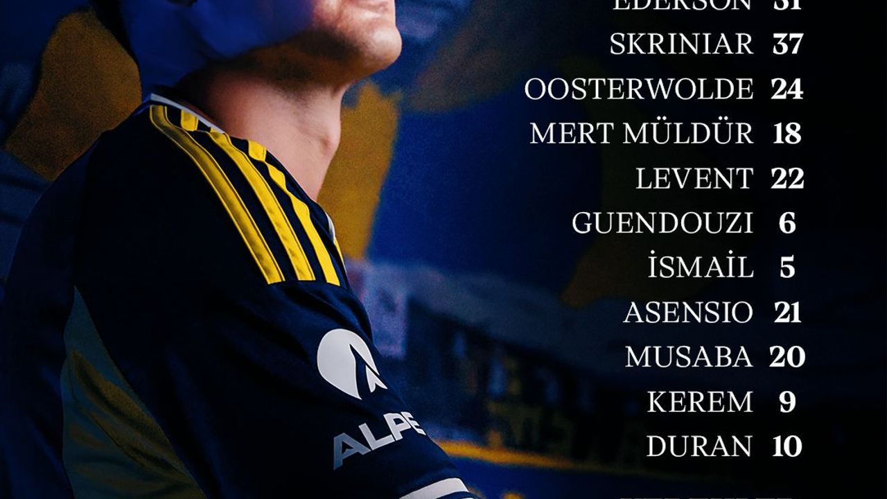 Açıklanan kadroya göre Fenerbahçe’de kaleyi Ederson koruyacak. Savunma hattında Skriniar ve Oosterwolde yer alırken, sağ bekte Mert Müldür, sol bekte ise Levent görev yapacak. Orta sahada Guendouzi, İsmail ve Asensio üçlüsü forma giyerken, hücum hattında Musaba, Kerem ve Duran yer aldı.