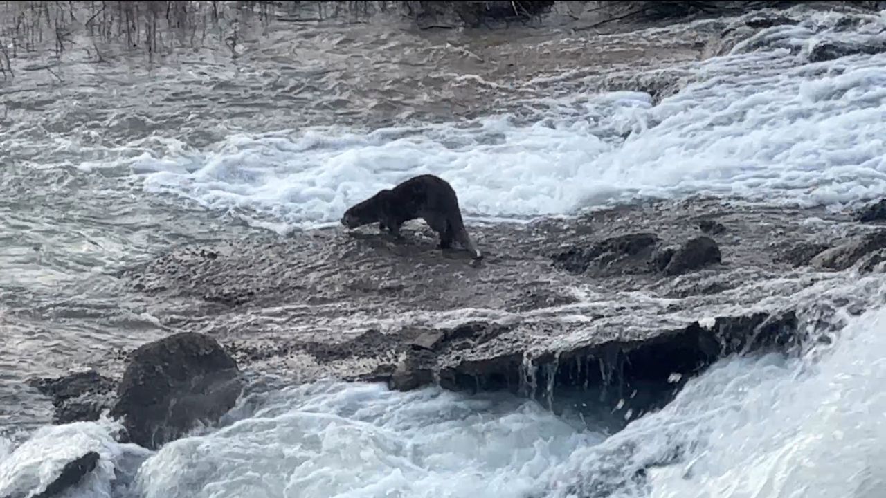 Görüntüde, su samurunun derede suya dalarak avlanmaya çalışması, bir süre sonra bölgeden uzaklaşması yer alıyor.