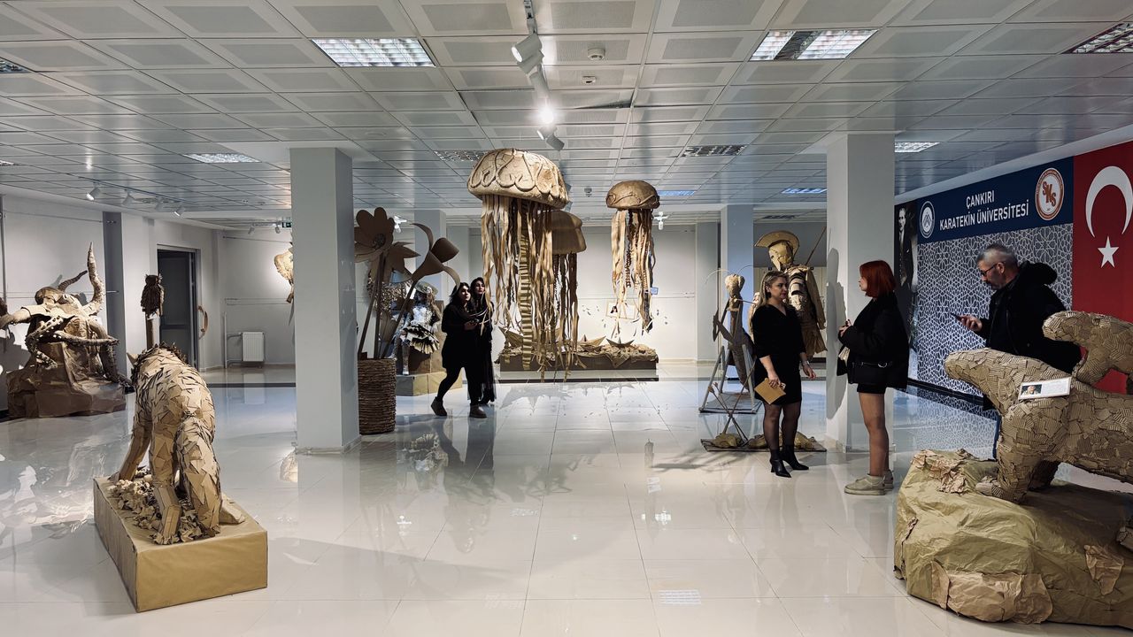ÇANKIRI (AA) - Çankırı Karatekin Üniversitesi (ÇAKÜ) Sanat, Tasarım ve Mimarlık Fakültesi Resim Bölümü öğrencileri tarafından hazırlanan 'Geri Dönüşüm Heykel Sergisi'nin açılışı gerçekleştirildi.