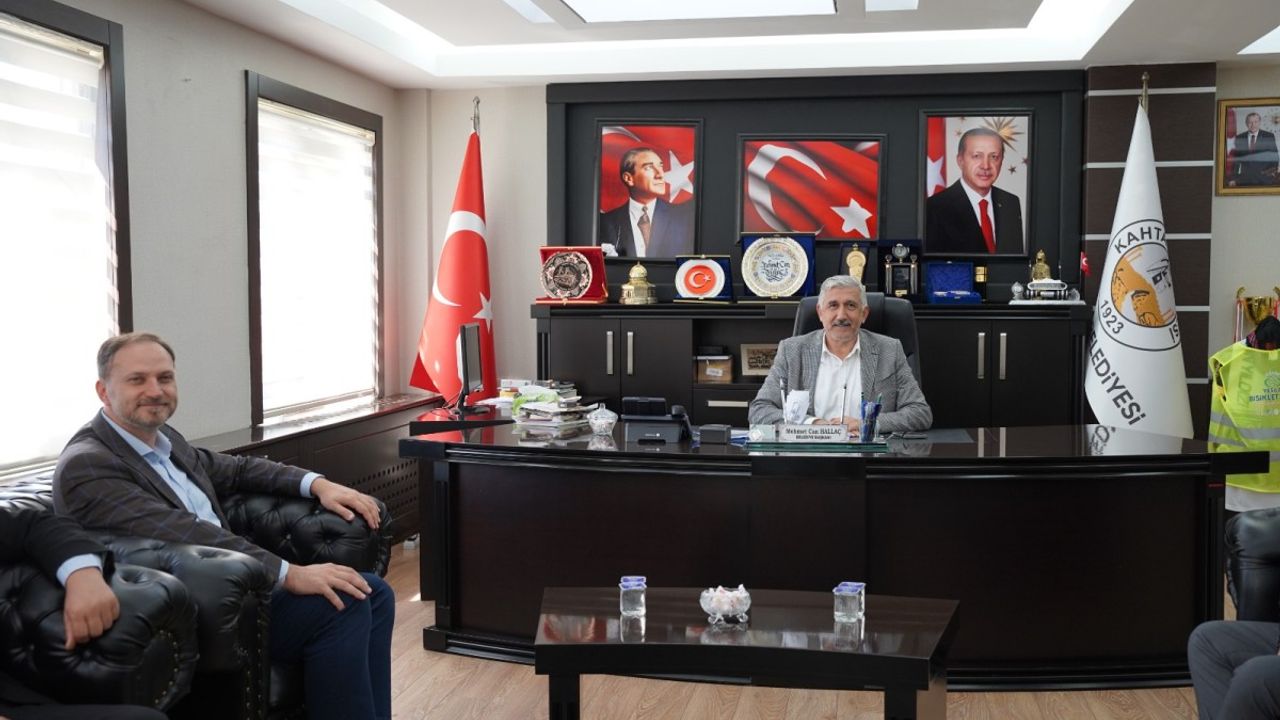 Yeşilay Genel Başkanı Doç. Dr. Mehmet Dinç, Kahta Belediye Başkanı Mehmet Can Hallaç ile 'Halkın Makamı'nda bir araya geldi. Ziyarette, toplumun zararlı alışkanlıklardan korunması, bilinçlendirilmesi ve sağlıklı nesillerin yetişmesine yönelik çalışmalar ele alındı.